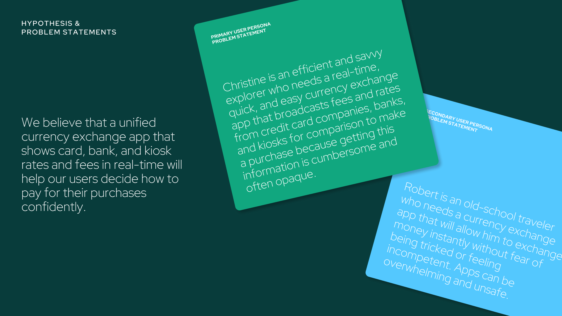 After the interviews, I found out that majority of the travelers/users feel lost and uncertain about their purchases and transactions on whether they did the right form of payment or get the best rate for their money.