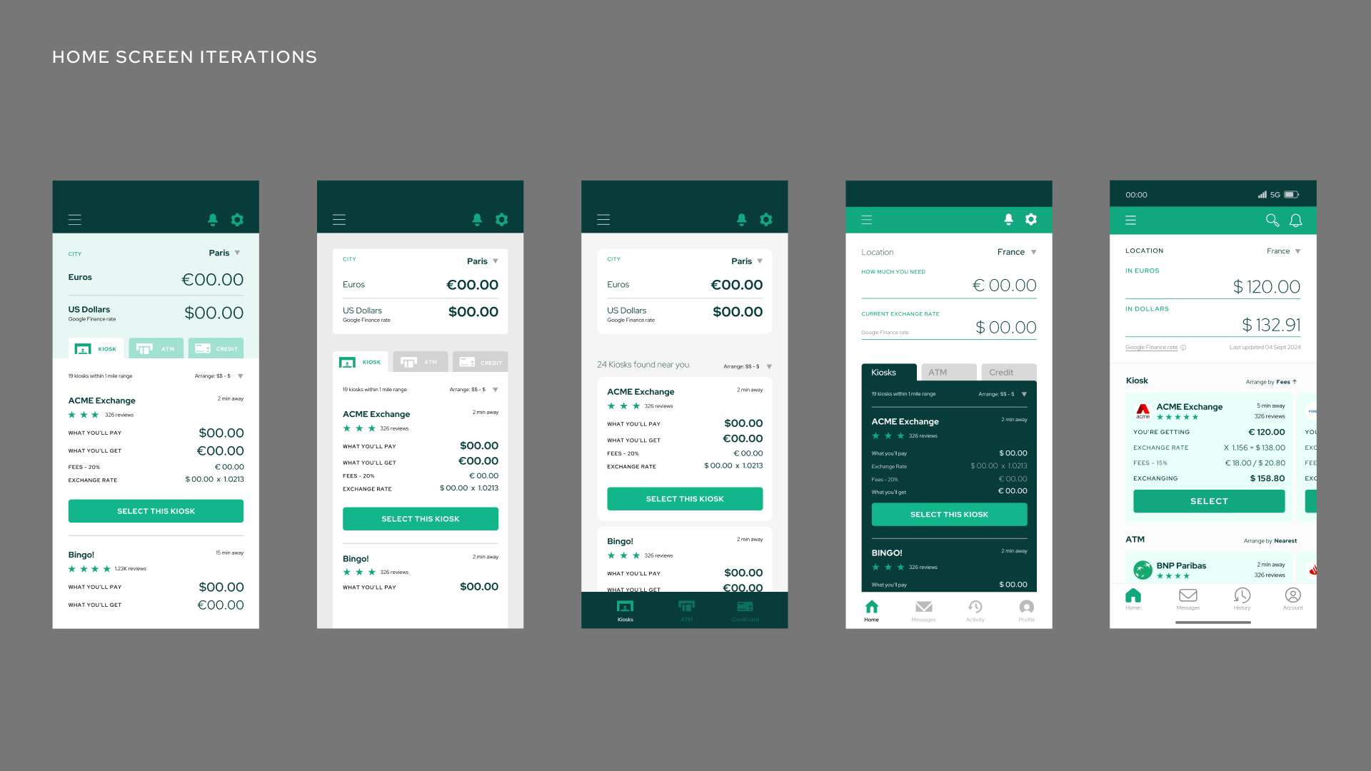 With this preliminary insight, I set a goal to create a foreign exchange app that shows the most up-to-date rates and broadcast fees and can compare different exchange kiosks, ATMs, and credit cards.